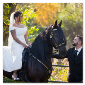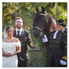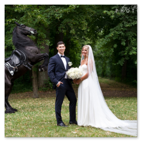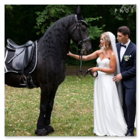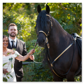 ♥ Art der Begleitung: Marino begleitet das Brautpaar zur Trauung / ein Portraitshooting mit dem Brautpaar / Spalier mit Friesenpferden vor der Kirche oder an Ihrer ausgesuchten Hochzeitslocation