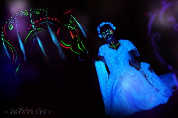 ...und wir ihn! Mit hautfreundlichen UV-Bodypaintingfarben haben wir verschlungene Muster auf unseren sehr geduldigen 4-beinigen Shootingpartner gemalt. Marino durfte währenddessen gemütlich sein Futter mampfen, dann ging's ab zum Shooting. Vielen Dank an Nadja Ritter für's Modellstehen bzw. -sitzen :) Es war ein ganz toller Abend und es sind unvergessliche Aufnahmen entstanden. Die Fotos sind von Fotografin Michaela Mejta.