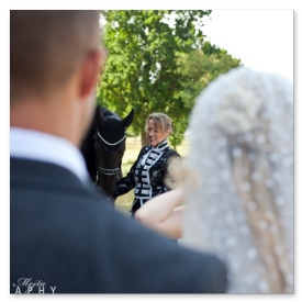 ♥ Outfit: Verschiedene Outfits sind möglich, Sie entscheiden. Passend zum Pferd und abgestimmt auf den Look Ihrer Hochzeit stehen Outfits in Gold, Silber, Barock oder Tracht zur Verfügung. Auch Marino wird passend gestylt - Mähne offen oder geflochten, Lederzeug in verschiedenen Ausführungen uvm.