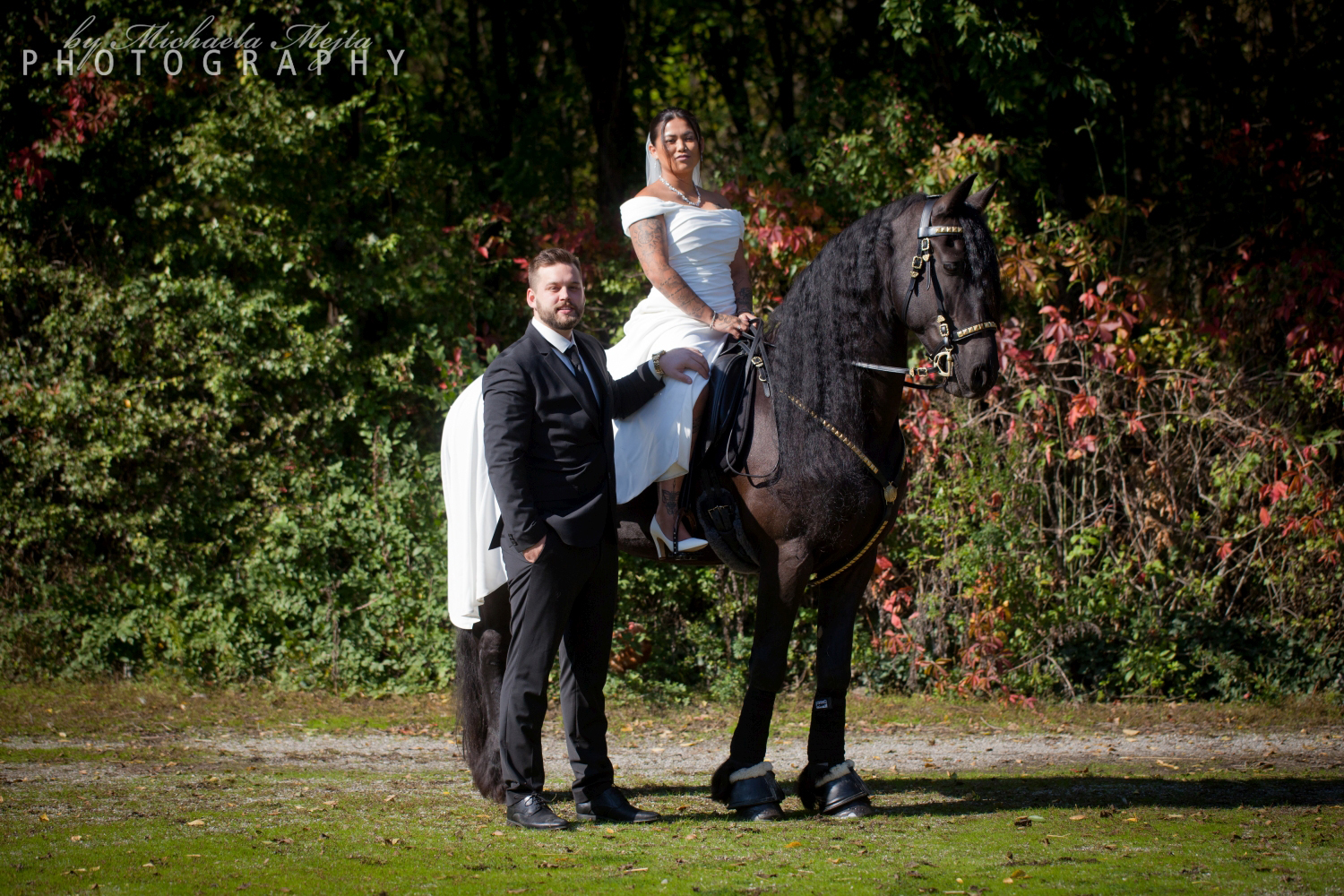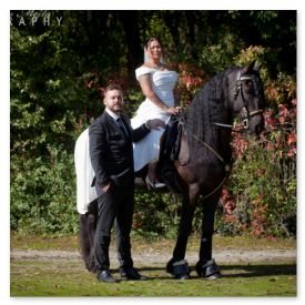 ♥ Art der Begleitung: Marino begleitet das Brautpaar zur Trauung / ein Portraitshooting mit dem Brautpaar / Spalier mit Friesenpferden vor der Kirche oder an Ihrer ausgesuchten Hochzeitslocation